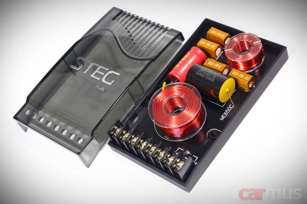 Кроссоверы выполнены в корпусах среднего размера. Компоненты пусть и без громких имён, но вполне приличные – катушки, намотанные толстым проводом на "воздушном" сердечнике, плёночный Bennic в цепи ВЧ и брендированный неполярный электролит в звене СЧ/НЧ. Резисторы в аттенюаторе твитера снабжены радиаторами – не думаю, что здесь это настолько актуально, но выглядит красиво.