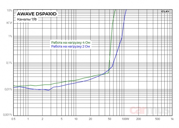 Мощностные параметры Awave DSPA10D, каналы 7-8 (измерение на 1 кГц):